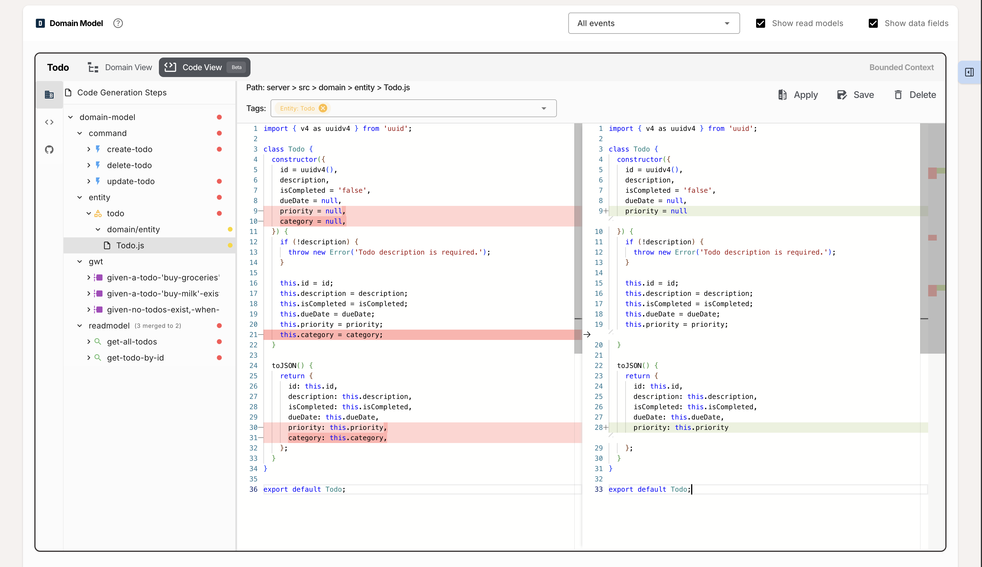 As you evolve your Domain Model, simply repeat the process. The system intelligently detects what has changed and surgically updates only the relevant parts of your codebase.